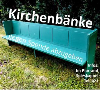 Die Kirchengemeinde Spieskappel gibt gegen angemessene Spende verschiedene alte Kirchenbänke ab.