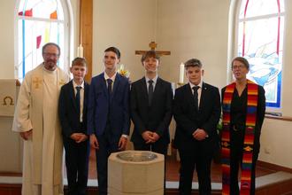 Konfirmiert wurden Jan Thiele, Finn Thiele, Jonas Utpatel, Leo Steinhauer und (nicht auf dem Bild) Jakob Hornung.