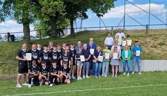Ehrenurkunde in Bronze an die B-Jugend für die erfolgreiche Kreismeisterschaft 2022/2023: Thomas Kretschmer (Trainer), Björn Hellmuth (Trainer), Elias Bretthauer, Lilija Bruch, Luke Cerba, Alessandro Feist, Luca Joel Hellmuth, Nick Hoelke, Elias Kant, Artur Kraus, Felix Kretschmer, Devin Leikam, Fynn Passoth, Paul Rödiger, Luis Rommel, Omar Abdikarim Sharif, Tomke Malte Staffel, Luis Thomas