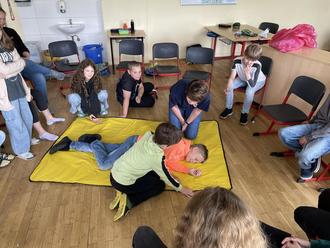 Außerdem durften sich die Kinder unter fachlicher Anleitung gegenseitig bandagieren, war für großes Gelächter sorgte. Zum Schluss erhielt die Klasse eine Urkunde und alle waren sich einig: Das war eine tolle Doppelstunde – vielen Dank!