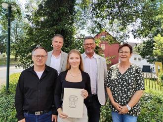 Standesbeamte sind als Sachbearbeiter im Standesamt in den Städten und Gemeinden für den Staat sowie die Bürgerinnen und Bürger tätig. Die Aufgaben der Standesbeamten sind vielfältig. Im öffentlichen Fokus stehen dabei meist Eheschließungen sowie die Beurkundungen von Sterbefällen. Milena Hofmann absolvierte eine Einarbeitungszeit im Personenstandswesen und die Ausbildung zur Standesbeamtin bei der Akademie für Personenstandswesen in Bad Salzschlirf, welche mit einer schriftlichen Abschlussprüfung endete. Bürgermeister Jens Nöll gratulierte Frau Hofmann zur bestandenen Prüfung und überreicht ihr die Urkunde. Weitere Standesbeamte im Rathaus sind Michael Bühn, Torsten Waldeck und Liane Kuchar.