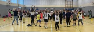 Die Veranstaltung begann mit einem gemeinsamen Eröffnungstanz in der Turnhalle. Die Stimmung war trotz des regnerischen Wetters voller Energie und Vorfreude.