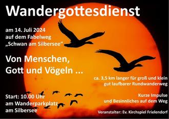 | 10 Uhr | Wandergottesdienst „Von Menschen, Gott und Vögeln…“ |