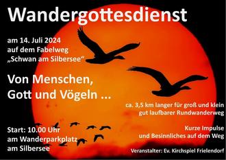 | 10 Uhr | Wandergottesdienst „Von Menschen, Gott und Vögeln…“ |