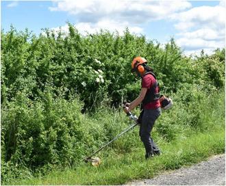 Der Freischneider ist in der manuellen Landschaftspflege vielseitig einsetzbar. Der richtige Umgang mit Gerät und Ausrüstung erleichtert die Arbeit und reduziert Verletzungsrisiken. © LPV Schwalm-Eder e.V.