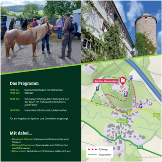 Der Naturpark-Tag lässt die Vielfalt des Naturparks Knüll lebendig werden. Rund um Schloss Neuenstein laden vielfältige Stände, Mitmachaktionen, Musik und eine Schnupperführung zum Entdecken und Informieren ein. Kunsthandwerk und Kulinarik, viele Themen rund um Naturschutz, regionale Initiativen und Engagement, Bildung und Tourismus zeigen ihre Arbeit und Produkte. Das besondere Ambiente des Schlosses Neuenstein bietet den perfekten Rahmen für die bunte Veranstaltung.