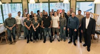 Die Mitarbeitenden des Europabades, Mitglieder des Zweckverbandes Europabad, Vertreterinnen und Vertreter der politischen Gremien in Schwalmstadt, Vize-Landrat Jürgen Kaufmann (re.) und Schwalmstadts Bürgermeister Tobias Kreuter (4. v. li.). (Bildautor: Julian Klagholz | Kreisverwaltung Schwalm-Eder)