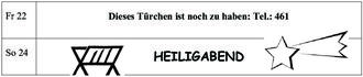 Falls Interesse an der Übernahme eines „Türchens“ besteht, melden Sie sich doch bitte beim Pfarramt, Tel.: 461)