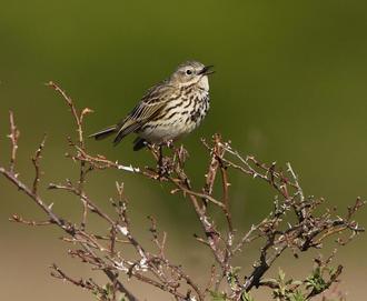 Von niedrigen Sträuchern aus markiert der unscheinbare Wiesenpieper durch Gesang sein Revier, hohe Gehölze dagegen meidet der unscheinbare Singvogel © Christian Gelpke
