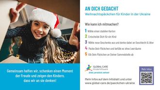 Möchten sie mithelfen, Weihnachtspakete für bedürftige Kinder in der Ukraine zu packen und zu verschenken? Bis Anfang Dezember 2025 ist dies noch möglich. Weitere Infos bei Kristiane Springstein unter Tel. Nr. 06691-927 5320. Die gepackten Pakete können nach Absprache im Gemeindehaus der Gemeinde Gottes Leimsfeld, Gartenstr. 13 abgegeben werden. Auch im Internet unterwww.global-care.de/paeckchen-ukraine erfahren sie mehr über diese besondere Aktion.