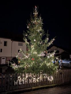 Der sehr schön gewachsene und von F. v. Baumbach gespendete Weihnachtsbaum wurde von Mitgliedern des Ortsbeirats und der Gemeinschaftsliste Großropperhausen am Dorfplatz aufgestellt und geschmückt. Herzlichen Dank an Alle, die in großer Zahl an dieser Aktion beteiligt waren, geholfen haben zusammen die Lichterkette zum Leuchten zu bringen und den ebenfalls von Fritz mitgebrachten leckeren Glühwein genossen haben. Danke auch an Heidrun Braun für das Trompetenspiel.