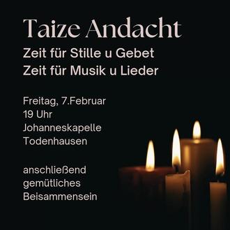 | 19.00 Uhr | Johanneskapelle Todenhausen – Taizé-Andacht |