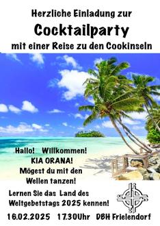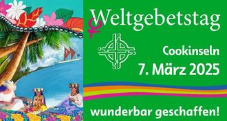 „wunderbar geschaffen!“ ist das Thema des diesjährigen Weltgebetstags. Christinnen der Cookinseln - einer Inselgruppe im Südpazifik, viele, viele tausend Kilometer von uns entfernt - laden ein, ihre positive Sichtweise zu teilen: wir sind „wunderbar geschaffen!“ und die Schöpfung mit uns.