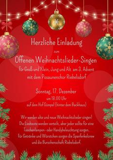 Am 17.12. (3. Advent) treffen wir uns zum Weihnachtsliedersingen in Riebelsdorf: