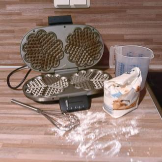 Jeweils zu Beginn der ersten Stunde begannen die Kinder gemeinsam mit einigen Müttern, die mitgebrachten Waffelteige zu backen. Ab 9.00 Uhr wurden dann im Flur gegenüber der beiden E1 Klassen lange Tischreihen aufgebaut. Alle Waffeln wurden auf Servietten drapiert und arrangiert. Ab 9.30 Uhr durften die Kinder ihre „Einkäufe“ tätigen. Sowohl die Käufer als auch die Verkäufer waren begeistert – auf beiden Seiten kam die Aktion sehr gut an.