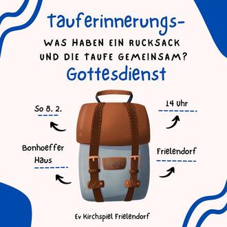 | 14:00 Uhr | Dietrich-Bonhoeffer-Haus Frielendorf, Tauferinnerungsgottesdienst für groß und klein – Gerne zum Tauferinnerungskerze die Taufkerze mitbringen |