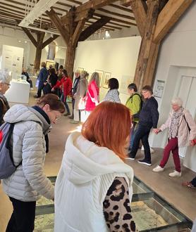 Am vergangenen Sonntag (08.03.2026) war eine Frauengruppe im Hochzeitshaus zu Gast und freute sich über unser abwechslungsreiches Programm zum Mitmachen. Organisiert wurde die Kultur-Fahrt vom Frauenbüro des Schwalm-Eder-Kreises anlässlich des Weltfrauentages. Nach einer besonderen Themenführung mit Stefanie Mnich und einer „bewegenden“ Tanzüberraschung ging es weiter zum „Markt der Möglichkeiten“. Dort waren im Museum vier Kreativstationen aufgebaut, die von den Teilnehmerinnen mit großer Begeisterung genutzt wurden. Die Bilder vermitteln einen Eindruck von diesem Programm, das die Künstlerin Michaela T. Spellerberg gemeinsam mit der Museumsleiterin geplant hat.