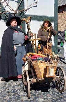 Das Wildkräuterweib und die Räucherhexe zogen mit ihrem kleinen Wagen und der Kiepe durch die Gassen und erzählten allerlei humorvolle Anekdoten.