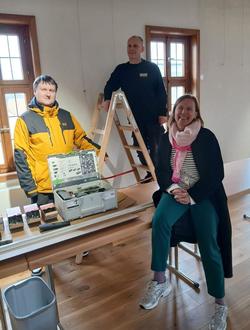 Hinter den Kulissen wird an vielen Ecken und Enden fleißig gearbeitet. So wurden u.a. Bilderschienen für die Aufhängung unserer Gemälde und Grafiken angebracht.