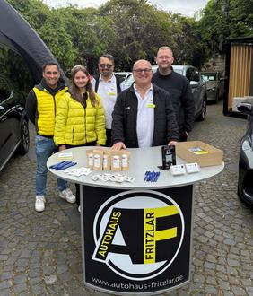 Nach der offiziellen Eröffnung durch Bürgermeister Hartmut Spogat dankte Susanne Ebel, Geschäftsführung Stadtmarketing Fritzlar e.V., der Kreissparkasse Schwalm-Eder für die Unterstützung. Gemeinsam fand man sich mit den Vertretern der Autohäuser und des Vorstandes des Veranstalters Stadtmarketing Fritzlar e.V. zum gemeinsamen Pressefoto zusammen.