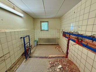 Im Duschbereich wurde mit Rohrarbeiten begonnen.
