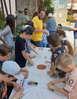 Unsere Fritzlarer Ferienkinder waren an drei Nachmittagen im Museum und hatten viel Spaß. Erstmal haben sie im Museum verschiedene Keramikgefäße genau angeschaut. Kaum zu glauben: Diese Gefäße haben Menschen aus unserer Region vor rund 5.000 Jahren hergestellt. Im Museumshof wurde anschließend getöpfert. Nach den Vorbildern im Museum oder lieber der Phantasie freien Lauf lassen? Alles erlaubt… Außerdem gab es eine Schreibwerkstatt. Die Ferienkinder haben im Museum historische Dokumente gesucht. Danach sollten die alten Schriften mit Tinte und Gänsekiel selbst ausprobiert werden.