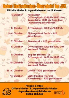 Das Jugendzentrum bietet in den Herbstferien ein abwechslungsreiches Programm für Kinder und Jugendliche ab der 5. Klasse an.