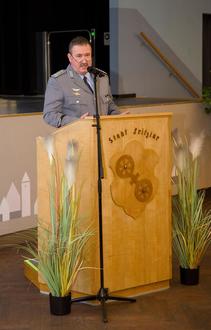 Oberst Thomas Blum hält seine Ansprache als Standortältester.