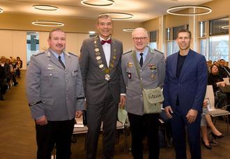 v.l. n. r.: Oberst Thomas Blum, Bürgermeister Hartmut Spogat, Oberst Siegfried Zeyer, Stadtverordnetenvorsteher Mario Jäger