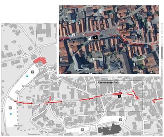 Um die Altstadt weiterhin zu erreichen, erfolgt eine Umleitung über die Bundesstraße (B450) - Gießener Straße - über den Marktplatz.