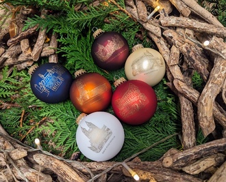 Die Serie der beliebten Weihnachtsbaumkugeln mit Motiven der Sehenswürdigkeiten der Dom- und Kaiserstadt Fritzlar werden ergänzt durch eine sechste Kugel in Kobaltblau anlässlich des 1300-jährigen Bestehens der Stadt.