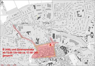 Die Straße Allee wird ab ca. 09.00 Uhr am Kreuzungsbereich zur B450 gesperrt (einschließlich Kasseler Straße 27-29).