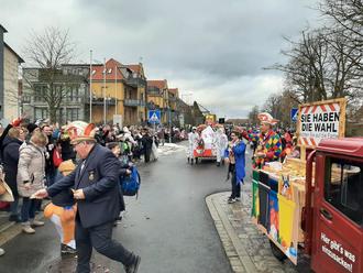 Mit dem Ende des Festzuges zeigte sich der Februar dann doch noch von seiner nassen Seite: Ausgiebiger Regen setzte ein, und die Straßen leerten sich rasch. Viele Besucherinnen und Besucher suchten Schutz in den Kneipen der Altstadt oder in der Stadthalle – das närrische Treiben verlagerte sich kurzerhand nach drinnen. Einen besonders kräftigen Applaus gab es während des Umzugs für das Sicherheitspersonal. Ob Polizei, Feuerwehr, Sanitätsdienst oder private Sicherheitsdienste – ihr Einsatz sorgte dafür, dass tausende Besucherinnen und Besucher unbeschwert feiern konnten.
