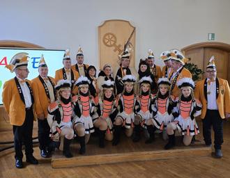 Doch alles half nichts: Unter dem lautstarken Beifall der Zuschauerinnen und Zuschauer erstürmten die Narren das Rathaus. Schließlich musste Bürgermeister Hartmut Spogat kapitulieren und übergab symbolisch den Rathausschlüssel in die Hände der Tollitäten.