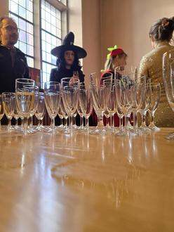 Nach einer kurzen Ansprache lud Spogat zu einem kleinen Umtrunk in den Rathaussaal ein. Dort wurde bei guter Stimmung angestoßen, bevor die närrische Schar nach einem kurzen Aufenthalt weiter durch die Stadt zog und den Rosenmontag offiziell einläutete.