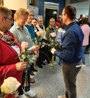Bürgermeister Andreas Damm eröffnete den Abend mit einer Begrüßungsrede und einer charmanten Anerkennung der Kunst, in dem er jedem Mitglied des Acrylmalkurses eine Rose überreichte. Anschließend ergriff die Leiterin des Kurses Frau Weisheit-Sommerfeld selbst das Wort. Sie bedankte sich herzlich bei den Gästen, dem Bürgermeister und allen Beteiligten, die diesen Abend ermöglicht haben. Frau Weisheit-Sommerfeld erklärte einige Arbeitstechniken der ausgestellten Exponate. Die Vielzahl der ausgestellten Motive sowie die Anzahl der Exponate sprachen für sich: die Ausstellung „Farbenfrohe Vielfalt“ machte seinem Titel alle Ehre. Für jeden Geschmack der Besucher und Besucherinnen war etwas dabei. Die Gemälde sind nicht nur farbenfroh, sondern auch thematisch weit gefasst. Gegenständliches als auch Abstraktes ist zu sehen.