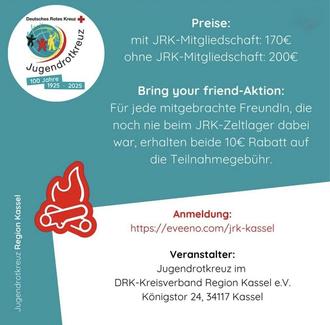 Auch in diesem Jahr gibt es wieder ein Jugend-Zeltlager, ausgerichtet vom Jugendrotkreuz Region Kassel. Alle Kinder ab 6 Jahren können mitfahren, auch ohne JRK Mitgliedschaft. Bei Fragen meldet euch gerne unter emily.martin@rotkreuz.team