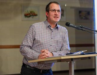 Der Vorsitzende Thomas Auel während seines Berichtes.