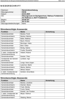 „Die Gemeindevertretung der Gemeinde Fuldabrück hat am 20. März 2025 folgende I. Än-