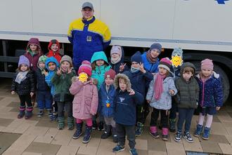 Die Kinder haben zum Beispiel der Müllabfuhr, dem Getränkelieferant, den Erziehern, dem Bäcker, dem Verkäufer und dem Bauhof eine Medaille überreicht und ihnen gedankt.