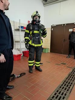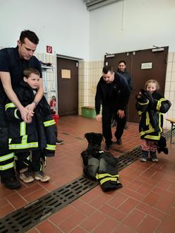 Die „Schulis“ der Kindertagesstätte Bergshausen hatten direkt am zweiten Tag des Brandschutzprojektes die Möglichkeit, der Freiwilligen Feuerwehr Bergshausen einen Besuch abzustatten. So konnten sie direkt vor Ort einen Einblick in den Alltag der Feuerwehrleute bekommen. In einem Sitzkreis wurden zunächst die Aufgaben der Feuerwehrmänner und Feuerwehrfrauen besprochen. Die Kinder konnten auch die notwendige Arbeitskleidung anschauen und auch anziehen.