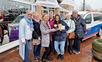 Die Frauen vom Handarbeitskreis überreichten ihre Spende an Wünschewagen-Koordinatorin Larissa Groffmann in Lohfelden. Mit dabei: das Lieblingsstücke-Team.