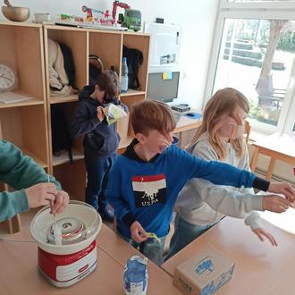 Besonders beliebt war der kreative Handel mit handgefertigten Produkten wie Keksen, Popcorn, Limonade oder kleinen Kunstwerken. Auch Dienstleistungen – etwa Massagen– wurden angeboten. Bezahlung erfolgte mit der eigens eingeführten Währung „Stero“. Dabei lernten die Kinder spielerisch den Umgang mit Geld, wirtschaftlichen Zusammenhängen und das Aushandeln von fairen Preisen – alles Kompetenzen, die weit über den Kita-Alltag hinausgehen.