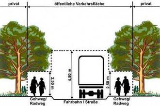 Bei Rückschnittmaßnahmen bitten wir zu beachten, dass die vorgeschriebene lichte Höhe über einem Geh- der Radweg mindestens 2,50 m, über einer Fahrbahn mindestens 4,50 m beträgt.