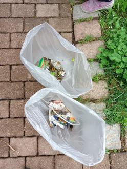 Am Ende des Ausflugs kamen zwei gut gefüllte Beutel voll mit Müll zustande. Da waren die Kinder doch baff, wie viel eigentlich überall rumliegt.