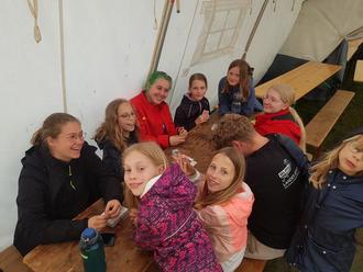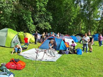 Gemeinschafts-, Essens-, und Aufenthaltszelte, Tische und Bänke, Planen und Boote wurden bereitgestellt sowie Versorgungsleitungen für Strom und Wasser gelegt. Am frühen Freitagmittag erschienen dann die ersten Kinder und Jugendliche und bauten, gelegentlich mit Hilfe der Eltern, gemeinsam ihre Zelte für die nächsten drei Tage auf. Sonniges Wetter befeuerte die gute Stimmung unter den 53 Teilnehmer-, und BetreuerInnen. Vereinzelte Regenschauern die sich in den folgenden Tagen hin und wieder einstellten konnten diese nicht trüben.