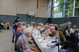 So wurden ca. 700 Seniorinnen und Senioren aus den Gemeinden Kaufungen, Niestetal, Söhrewald, Helsa, Lohfelden, Nieste sowie Fuldabrück zum feierlichen Beisammensein begrüßt. Landrat Andreas Siebert betonte in seinem Grußwort, dass „sich treffen und schnuddeln das Sinnvollste ist, was man heutzutage machen kann!“ Das fanden auch die Teilnehmerinnen und Teilnehmer und tauschten sich bei Kaffee und leckerem Kuchen rege aus. Versorgt wurden die ca. 70 Fuldabrücker Seniorinnen und Senioren von Mitarbeiterinnen des Rathauses, allen voran Bürgermeister Andreas Damm, der mit Freude Kaffee ausschenkte und das ein oder andere Pläuschchen hielt.