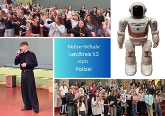 Zu der feierlichen Veranstaltung am 2. Juni 2025 waren zahlreiche Gäste erschienen, um das ehrenamtliche Engagement der jungen Menschen zu würdigen und sich bei ihnen zu bedanken. Neben der Schulleitung der Söhre-Schule sowie dem Leiter des Projekts, Simon Dölle, waren die Ausbilderinnen Frau Schaumburg und Frau Syla von der KVG, Frau Tanzer als Fachdienstleiterin ÖPNV und Sport, Herr Koch als Leiter des Fachbereichs Schulen des Landkreises Kassel sowie Frau Langer von der Jugendkoordination der Polizei Nordhessen gekommen. Auch zahlreiche Mitglieder der Schule hatten mitgeholfen, die Veranstaltung feierlich zu umrahmen. Der Solo-Auftritt von Deven Schulz sowie das Mitmachmusical des WP-Kurses Jg. 7 samt Unterstützung des Chors aus dem Jahrgang 5 unter der Leitung von Frau Asselborn und Frau Putz-Oelemann sorgten für Gänsehautfeeling.