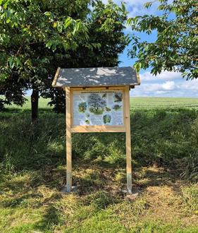 Bei der Streuobstwiese hinter dem Wohngebiet „Goldene Aue“ in Dörnhagen wurde kürzlich die in die Jahre gekommene Infotafel durch eine neue ersetzt. Die alte Tafel war witterungsbedingt morsch geworden und durch Sonneneinstrahlung stark ausgeblichen. Um die neue Tafel besser vor direkter Sonne zu schützen, entschied man sich, sie auf der gegenüberliegenden Wegseite aufzustellen.