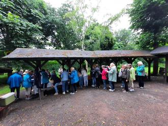 Um 8.00 Uhr startete ein Bus von Bonte voll besetzt mit TSG Sportlerinnen Richtung Mühlhausen. In Oberhone machten wir unsere Frühstückspause bei einer Grillanlage. Wie gewohnt, gab es einen üppig gedeckten Frühstückstisch vom Festausschuss mit allerlei Leckereien. Auf Grund der geschlossenen Toilettenanlage verteilten wir uns vor der Weiterfahrt in der Natur.